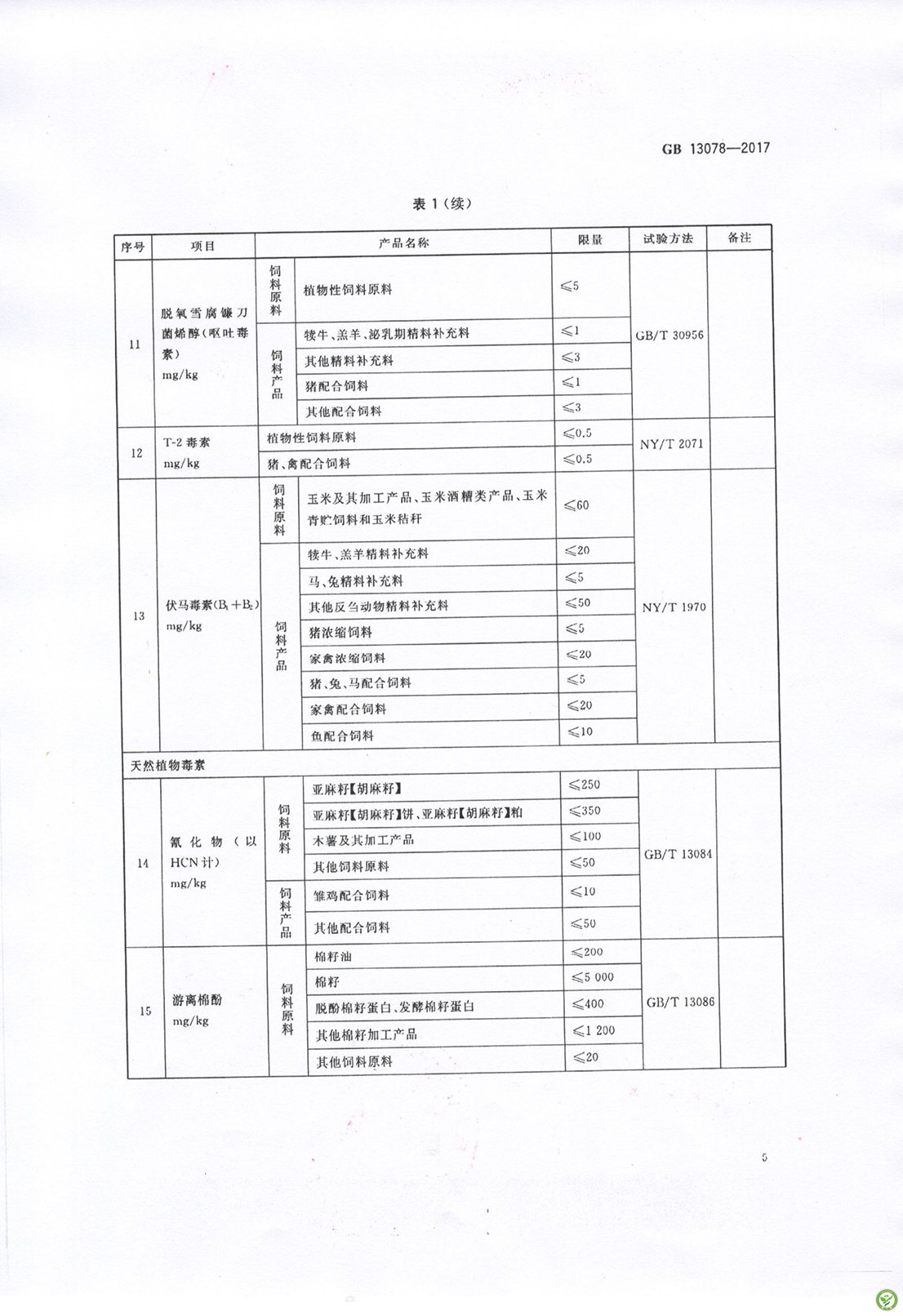 4、 结合检测技术的进步,增加和修改了部分项目的检测方法。特别是新标准修改了总砷的限量,删除了原标准对胂制剂的例外性规定,杜绝了胂制剂在饲料中的添加和使用。